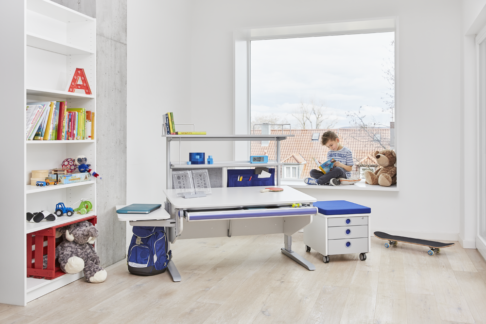 When designing an ergonomic workplace that is used over a longer period of time, we unfortunately pay far too little attention to good posture and ergonomic children’s furniture. Often the children do their homework at the dining room table, which can lead to a bad posture because the legs are in the air or the back is not straight because the table top cannot be tilted.