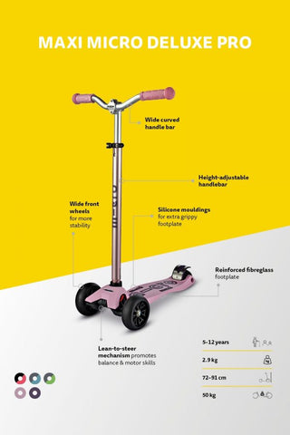 Thanks to the height-adjustable handlebar, the Maxi Micro Deluxe Pro grows with the child and will be a long-time companion.
